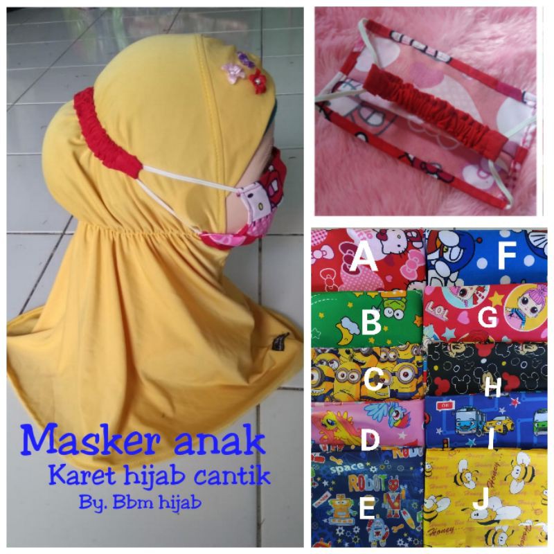 Masker anak, Bhn katun micro Aplikasi karet hijab cantikTinggal kan catatan tuk pilih wrn #bbmh