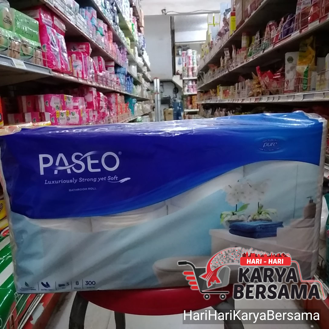 PASEO BATHROOM ROLL 3PLY PACK 8 X 300'SPaseo Bathroom Roll Tissue tissue berkualitas tinggi untuk kamar mandi yanglembut dan higienis Terbuat dari 100 persen serat alami tissue ini tidak mudahsobek dan memiliki daya serap yang tinggi.FITUR :• Tisu toilet Paseo berfungsi untuk membersihkan, membasuh dan mengeringkanbagian area intim.• Tidak mengandung bahan kimia: Optical Brightening Agents (OBA).• Terbuat dari 100% serat alami. Tissue toilet Paseo berserat lembut, alami dankuat untuk menyerap air secara maksimal.• Tisu toilet Paseo higienis dan cocok untuk semua jenis kulit.• Isi : 8