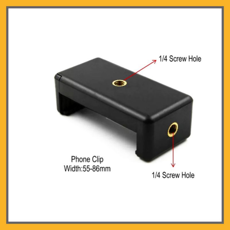 Holder HP bisa digunakan untuk holder HP seperti di tripod ataupun di tongsisBisa untuk semua jenis HP dengan ukuran lebar layar maksimal 5.5 - 8.5 cmMemiliki dua ujung lubang screw 1/4" memudahkan untuk menempatkan di tongsis atau tripod