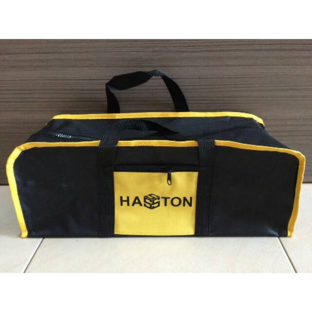Tool bag Hasston Prohex 4410-018Terbuat dari kanvas tidak tembus airBagian dasarnya terdapat lapisan kaku tebal sehingga tidak mudah penyokResleting besarPanjang 46cmLebar 16cmTinggi 17cmNB : Harap cek ketersediaan stok dah