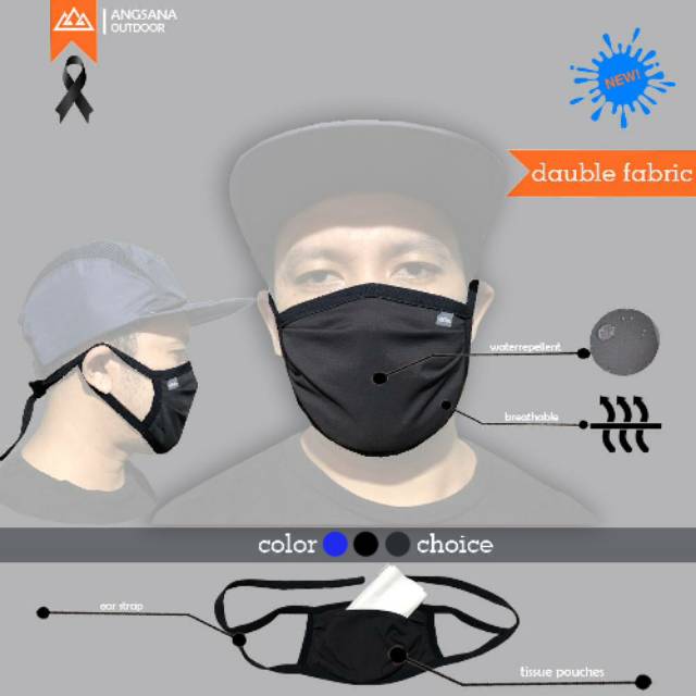 Angsana Original Mask Daily Activity..Caption :!!!!!Masker Angsana ini dapat di cuci berulangkali, dengan cara pencucian yang benar, memberikan umur panjang pada karakter Waterrepellentnya. ( tahan air durasi ringan ) lihat pada slide terakhir.!.Bahan Otoment Needle Ripstop.Produksi Textile Pabric : Korea.+.Karakter :- Anti Mikroba- Waterrepellent - Quick dry- Breathable - windbreaker.Option Collor Ready :- Dark gray.On Progress :- Blue- Black.Detail :- pengikat rubber folding factory- on slot Access Tissue etc- Dauble Fabric.One size 12cm x 16cm masih bisa melar..Retail :Paket 1 ( 50.000/6pcs )Paket 2 ( 100.000/15pcs )Paket 3 ( 500.000/ 100pcs ).Noted : .- Untuk penjatahan merata, maksimal sekali transaksi di paket 3, bila ingin menambah, ikut antrian berikutnya ( konfirmasi PO ke Admin bila request diatas paket 3 / repeat order).- dalam rangka Go green Pengemasan hanya 1 packaging sesuai pake