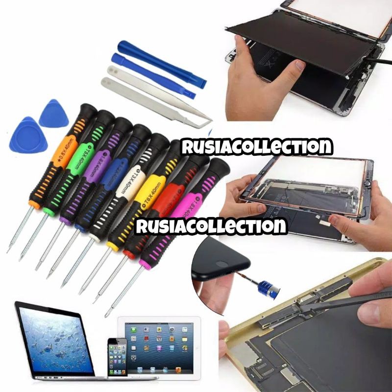 Obeng hp iphone P2 Macbook P5 samsung galaxy, PH00, xiaomi , laptop1 x T6 Tor x screw driver1 x T5 Tor x screw driver1 x T4 Tor x screw driver1 x 2.0 Straight screw driver1 x 1.5 Cross screw driver1 x 1.2 Cross screw driver1 x 1.2 Star screw driver1 x 0.8 Star screw driver2 x Paddle2 x mount bar1 x straight tweezer1 x curved tweezer1 x Graver1 x Scraper.✓Pentalobe *0.8 mm TS1 / P2 PL1 = digunakan pada iPhone untuk iPhone 4 (Akhir), 4S, 5, 5C, 5S, 6, 6 Plus, 6S, 6S Plus, SE, 7, 7 Plus , MacBook Air (sejak model akhir 2010), MacBook Pro dengan Retina Display dan MacBook 2015.Smartphone Meizu M series, laptop, macbook,✓+1.5mm ,Sekrup Phillips pada ponsel Samsung Galaxy S8.•Bagian dalam Apple iPhonesemua seri.•Smartphone Samsung Galaxy series.•Smartphone Xiaomi.•Berbagai brand Laptop.✓+1.2 mm/ P5 /TS4 /PL4 /MacBook Air and MacBook Pro with Retina Display✓-2.0 mm Slot atau minus, pipih, flat / Sekrup Flathead pada iPhone :Bagian dalam iPhone 4/5/6 sekrup flat-head✓ 0.6 mm Y-type (Tri-Point), Sekrup Y pada Baterai Macbook Pro 2010 :•Peralatan elektronik, •Nintendo GameCube, •Nintendo Game Boy Advance, •Boy Advance SP, •Ponsel Sanyo dan Kyocera, •Kamera digital Fuji•Apple memakai sekrup tipe Y untuk mengamankan baterai pada MacBook Pro 2010 dan 2011, •Apple Watch dan iPhone 7.✓Pentalobe *0.8 mm TS1 / P2 PL1 = digunakan pada iPhone untuk iPhone 4 (Akhir), 4S, 5, 5C, 5S, 6, 6 Plus, 6S, 6S Plus, SE, 7, 7 Plus , MacBook Air (sejak model akhir 2010), MacBook Pro dengan Retina Display dan MacBook 2015.Smartphone Meizu M series, laptop, macbook,✓+1.5mm ,Sekrup Phillips pada ponsel Samsung Galaxy S8.•Bagian dalam Apple iPhonesemua seri.•Smartphone Samsung Galaxy series.•Smartphone Xiaomi.•Berbagai brand Laptop.✓+1.2 mm/ P5 /TS4 /PL4 /MacBook Air and MacBook Pro with Retina Display✓-2.0 mm Slot atau minus, pipih, flat / Sekrup Flathead pada iPhone :Bagian dalam iPhone 4/5/6 sekrup flat-head✓ 0.6 mm Y-type (Tri-Point), Sekrup Y pada Baterai Macbook Pro 2010 :•Peralatan elektronik, •Nintendo GameCube, •Nintendo Game Boy Advance, •Boy Advance SP, •Ponsel Sanyo dan Kyocera, •Kamera digital Fuji•Apple memakai sekrup tipe Y untuk mengamankan baterai pada MacBook Pro 2010 dan 2011, •Apple Watch dan iPho