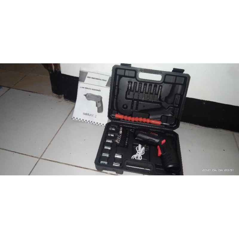 JLD Cordless Screw Driver 4.2 VSPESIFIKASI:Voltase 4.2 VKapasitas Batrai 18650 / 1500 mahKecepatan 250 r/minMaximum torque 3.5 n/mUniversal Connecting Rod:25 mm pin connector58 mm magnetic connector2 pcs hex bit 2.0 - 3.050 mm batch head 5-6-ph1-ph28 pcs sleeve 5-6-7-8-9-10-11-1225 mm group head:The word 3-4-5-6-7 pho-PH1-PH2-PH3 PZ0-PZ1 PZ2-PZ3 T10 - T15 - T20 - T25 - T27 - T30 - T35 - T40 - H2 and H3 - H4 - H5 - H6 - S2 - S34.2 V LITHIUMUSB CHARGING FOLDING SCREWD