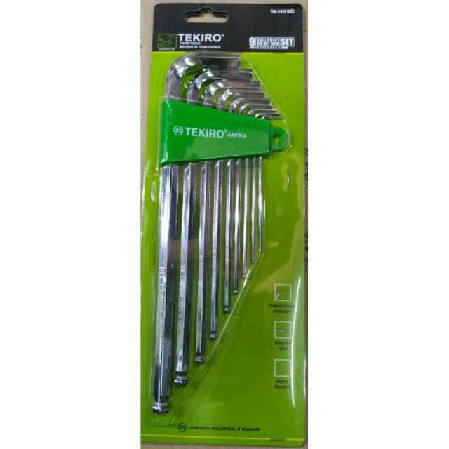 Kunci L :- 100% Original TEKIRO TOOLS,- Produk Hand Tools Tekiro Terbuat Dari Bahan Material Pilihan Seperti Spring Steel (S2) , Chrome Vanadium (CR-V), Carbon Steel (S45C), Chrome Molybdenum (CR-MO) Yang Cukup Kuat Ketahannya, Produk Yang Biasanya Menggunaka Bahan Tersebut Adalah Kunci L Atau Mata Untuk Obeng Getok, Kunci Pas, Tang DLL,- Bahan-bahan/ Material Yang Digunakan Adalah Merupakan Bahan Yang Terkenal Cukup Kuat, Anti Karat Dan Elastis/Tidak Mudah Patah Saat Digunakan Pada Kondisi Tertentu,- Memenuhi Standar Kualitas Dunia Seperti Japanese Industrial Standar (JIS) dan Deutsches Institute Fur Normung (DIN),- Telah Memenuhi Tiga Uji Lab Untuk Membukitkan Ketahan Dari Produknya, Seperti Torque Testes,Torque Testing Mechine Dan Terakhir Salt Spray Tester Untuk Mengetahui Seberapa Kuat Tingkat Korosinya.- Proses Pembuatan Produk Tekiro Seluruhnya Di Lakukan Di 70 Pabrik Tekiro Yang Tersebar Di Taiwan, China, Jepang dan Indonesia.- Harga Sudah 1SET (9pcs),- DETAIL UKURAN : 1,5mm, 2mm, 2,5mm, 3mm, 4mm, 5mm, 6mm, 8mm, 10mm,#tekiro#tekirotool#tekirotools#tekirojapan#tekirojepang#tekiroasli#tekirohandtools#handtools#L#kunciL#kunciLtekiro#kunciLset#Lset#kunciLpanjang#tekiroLpanjang#Lpanjang#BallpointHexKeyLong#tekiroBallpointHexKeyLong#BallpointHexKeyLongtekiro#BallpointHexKeyLongL#BallpointHexKeyLongset#Ballpoin#hex#key#