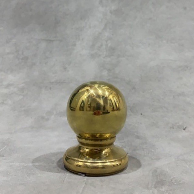Newel Post Cap Mahkota Kuningan Bola Sedang u/ Pipa 2 inchTebal = 2,2mmDiameter Tengah = 6,5cm Diameter Bawah = 6,5cm Tinggi = 8,