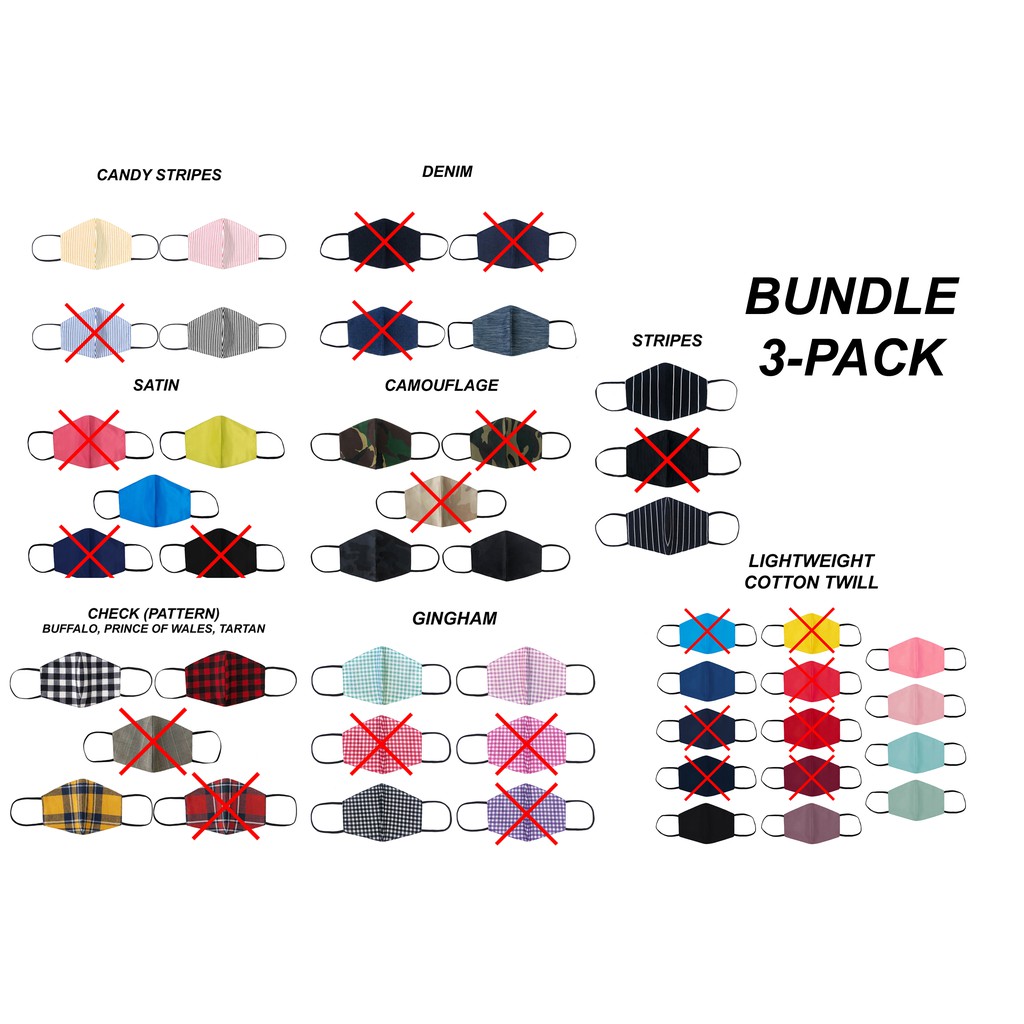 Non-medical Cloth Face Mask - Washable & Reusable (2-ply) (include lining)Untuk catatan pemilihan warna, ketik di kolom pesan/notes ya :)Masker 2-ply tanpa selipan kantong yang masih availableCamouflage :- Green- Blue- BlackLightweight Cotton twill :- Pink- Mint Green- Black- Dark Blue- Dusty Purple- Dusty Pink- Dusty GreenDenim :- Light Blue DenimSatin :- Yellow Green- BlueStripes :- Stripes- Pattern StripesCheck (Pattern) :- Black Buffalo- Red Buffalo- Yellow TartanCandy Stripes : - Yellow- Pink- BlackGingham :- Mint Green- Dusty Pink-